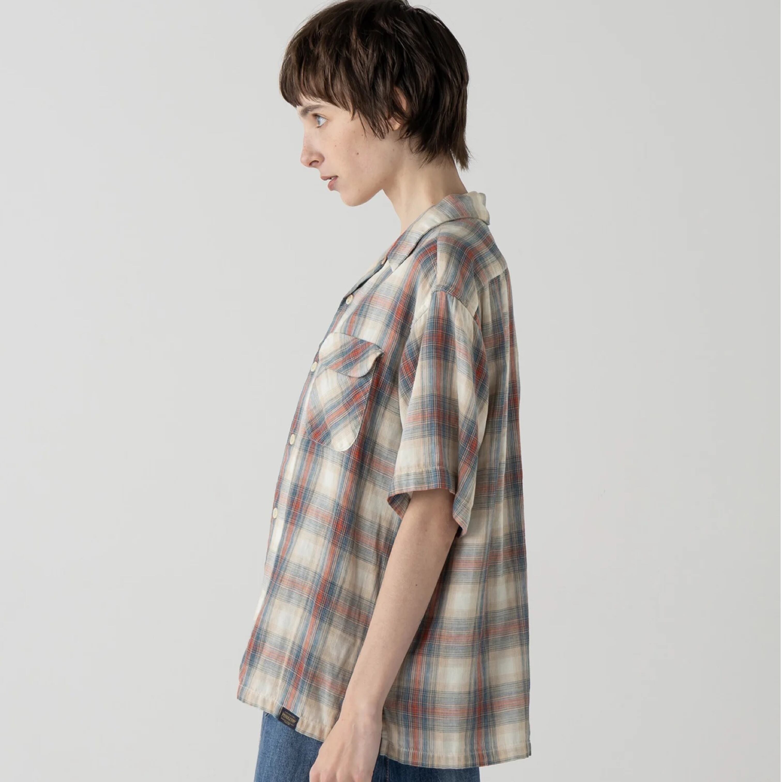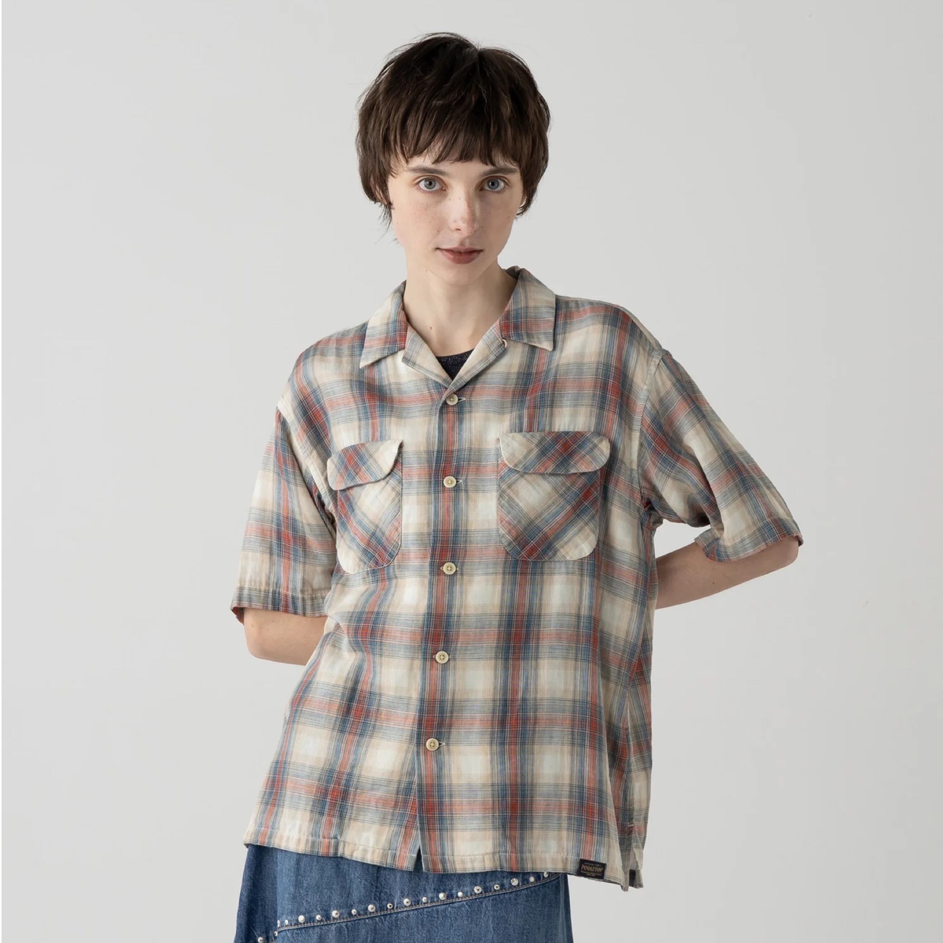 デザインの最大の魅力は、Pendletonアーカイブのチェック柄をパッチワーク風に再構築した特別仕様。柄の繋ぎ目部分にのみ接結加工を施すことで、さりげない立体感と奥行きを表現。シンプルなボトムスに合わせるだけで、着こなしが完成します。