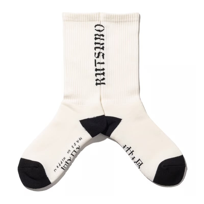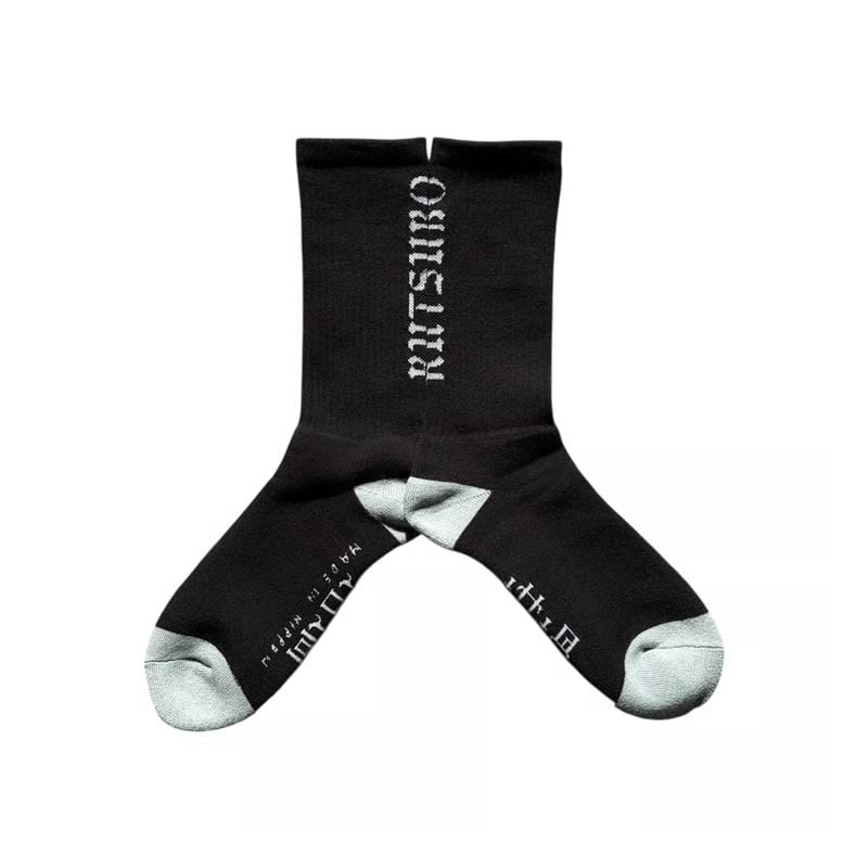 RUTSUBOロゴをアキレス腱部分にジャガードでデザインした定番ソックス。